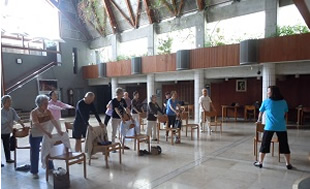 100トレレッスン インストラクターの指導のもと、足腰を丈夫にし、いきいきとした生活を送るため、皆さん元気はつらつと取り組んでいます。