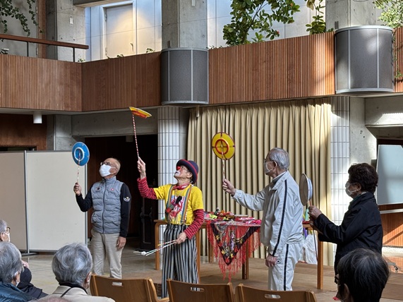 日本の大道芸の一つ「南京玉すだれ」 ♪アさて、アさて、アさてさて、さては南京玉すだれチョイと伸ばせば、浦島太郎さんの魚釣竿にチョイとにたり♪