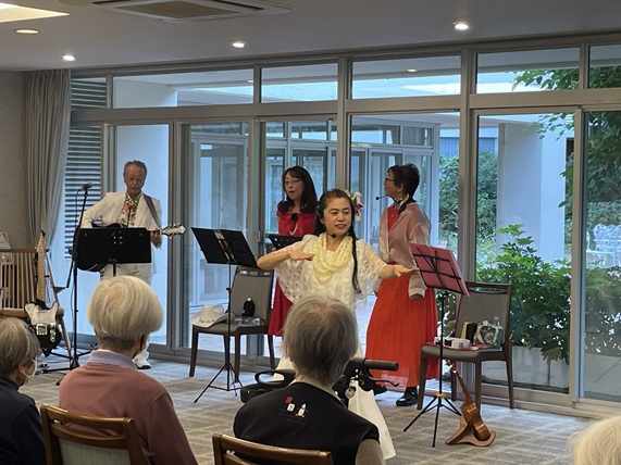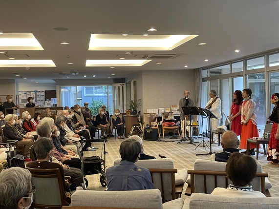 アンコールは「ふるさと」 リクエストされた入居者様も舞台へあがり皆んなで合唱です